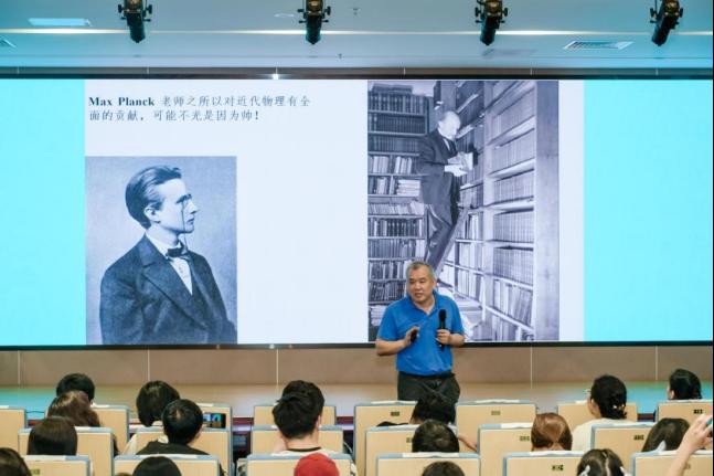 曹則賢從物理學史的回顧、物理學的教學、物理學的學習三個方面,講述了物理學史的變遷,并對物理學的教學和學習方法進行了分享。讓師生們在共赴一場物理之旅的同時,感受物理之美、踐行物理之力。他從人們喜歡在冬天曬太陽這一日常情景講起,提出了物體吸收光就一定會變熱么?吸收光的物體,其溫度會一直升高嗎?物體如何能容納無窮多的熱?等一系列問題,讓在場師生思考的同時,引出了“黑體輻射”這一物理概念。曹則賢表示,黑體輻射問題是近代物理的搖籃,是近代物理史上“一只會下金蛋的鵝”,通過回顧黑體輻射研究的細節,可以更加了解物理這門學問的歷史。他鼓勵師生要積極投入,樂學善教,在研學教中提升自我,為發展新質生產力貢獻新時代物理力量。