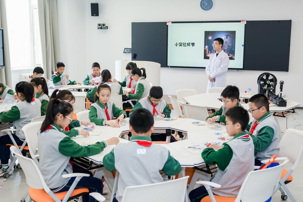 北京科技大學科普團隊、天津理工大學科普團隊、河北工業大學科普團隊分別為天津市南開實驗學校和天津海河教育園區南開學校的小學生們帶來了《DIY-顏色會變的畫制作》《風動未來:探索風力發電的奧秘》《神奇的光學現象-光柵衍射與偏振》等精彩的科普課程。現場互動頻頻、氣氛熱烈,這些活動不僅豐富了孩子們的課余生活,也為他們在“雙減”背景下提供了更多接觸科學的機會。