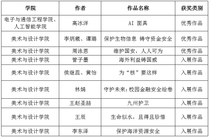 黨委學(xué)工部消息(通訊員 楊晨 阿迪拉)近日,由市委教育工委、市委國(guó)安辦舉辦的天津市新時(shí)代大學(xué)生國(guó)家安全主題藝術(shù)作品大賽評(píng)審結(jié)果揭曉,我校學(xué)生創(chuàng)作的3件作品獲“優(yōu)秀作品獎(jiǎng)”,9件作品入選天津市新時(shí)代大學(xué)生國(guó)家安全主題藝術(shù)作品展,3名教師獲“優(yōu)秀指導(dǎo)教師獎(jiǎng)”,學(xué)校獲優(yōu)秀組織獎(jiǎng)。