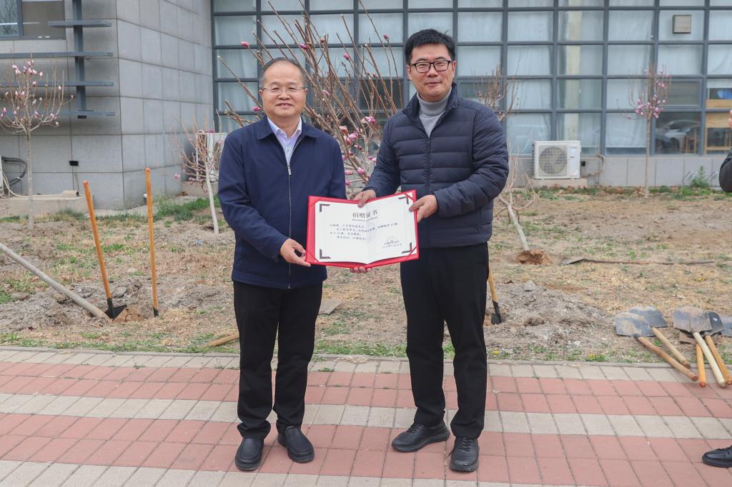 4月3日上午,捐贈種植儀式在雅藝樓東南側舉行。校黨委常委、副校長白學軍出席捐贈活動并向王曉勇校友頒發捐贈證書。校友會、校友服務與管理中心、后勤處、美術與設計學院相關負責同志及師生代表40余人參加活動。