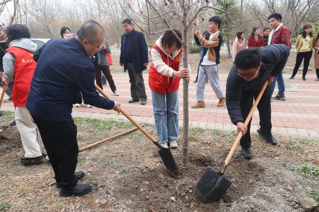 儀式結束后,白學軍與校友、師生代表共同種植玉蘭,培土澆水。