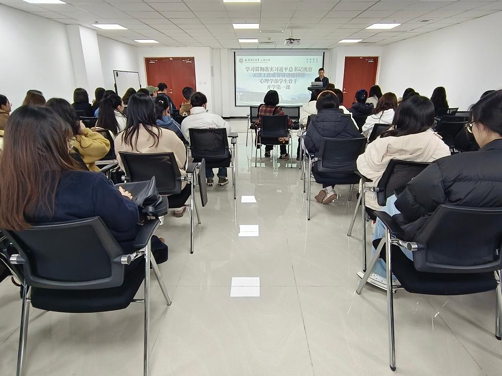 開學第一課聚焦“第一議題”制度落實,要求團學骨干們充分認識學習宣傳貫徹習近平總書記視察天津重要講話精神的重大意義,將學習宣傳貫徹習近平總書記重要講話精神作為當前和今后一個時期的首要政治任務,迅速掀起學習熱潮,在學部落地生根、開花結果。學部黨委副書記、紀委書記范曉銳囑托在場同學,作為心理學部的團學骨干,要深刻領悟“兩個確立”的決定性意義,增強“四個意識”,堅定“四個自信”,做到“兩個維護”,充分認識到自己身上的責任和使命,發揮好橋梁紐帶作用,珍惜學部寶貴資源,以學立身,矢志奮斗,努力成長成才。