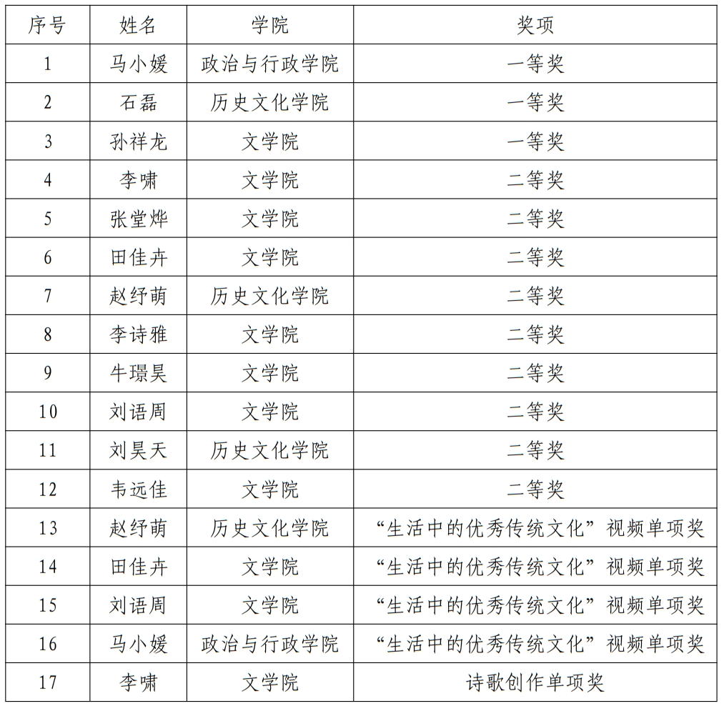 教務處、文學院消息(通訊員 李倩 李磊)近日,2023年華北五省(市、自治區)大學生人文知識競賽華北五省總決賽落下帷幕,我校遴選的12名學生全部載譽而歸,喜獲一等獎3項,二等獎9項,視頻單項獎4項,詩歌創作單項獎1項,其中政治與行政學院馬小媛以第一名的總成績獲得一等獎。