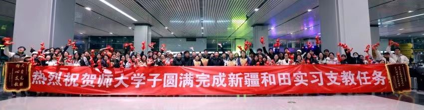 黨委學工部消息(通訊員 楊晨)2023年12月31日凌晨,我校2023年秋季學期援疆實習支教團60余名師生在圓滿完成為期三個半月的實習支教任務后,從新疆和田地區載譽而歸。校黨委常委、副校長陳玳瑋前往機場迎接實習支教學生,學校黨委學生工作部、繼續教育學院負責同志及相關工作人員隨同迎接。
