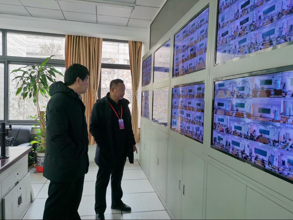 佟德志對考試組織情況、考場環境布置、監考教師配備和學生考風考紀進行仔細巡查,在教室中控室全面查看各考場考試秩序,聽取教務處負責人對本學期期末考試整體情況匯報。