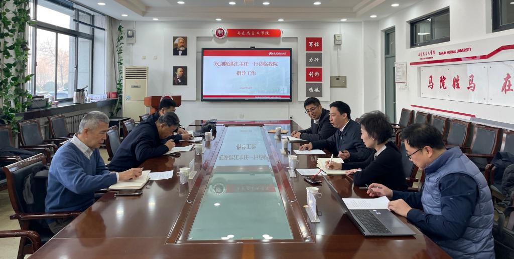 馬克思主義學院消息(通訊員 金明昊)12月29日,天津市關工委副主任、市人大原副主任陳洪江,市關工委研究室編輯、《經濟日報》天津記者站原站長余曉勇,市人大辦公廳老干部處二級調研員李建民一行蒞臨天津師范大學馬克思主義學院調研思想政治理論課建設情況。我校黨委常委、副校長陳玳瑋出席,離退休工作處處長李茜、馬克思主義學院黨委書記郭尚維、常務副院長李朝陽、市高校社科實驗室主任魏進平陪同調研并參加座談。