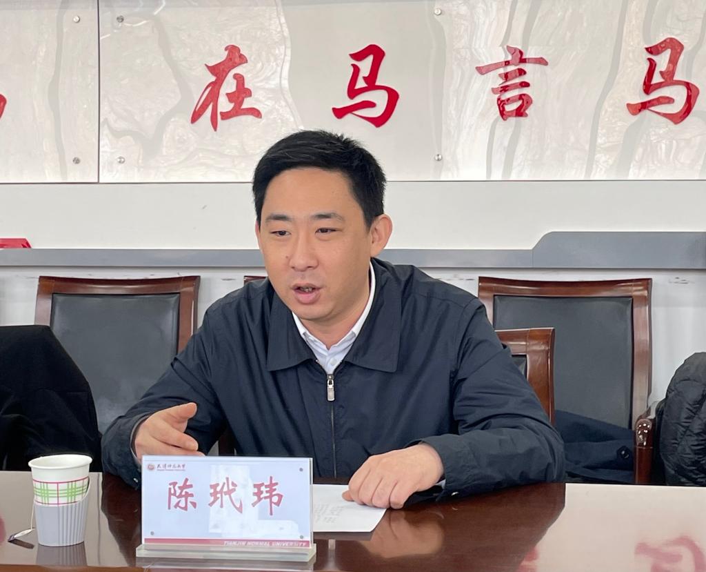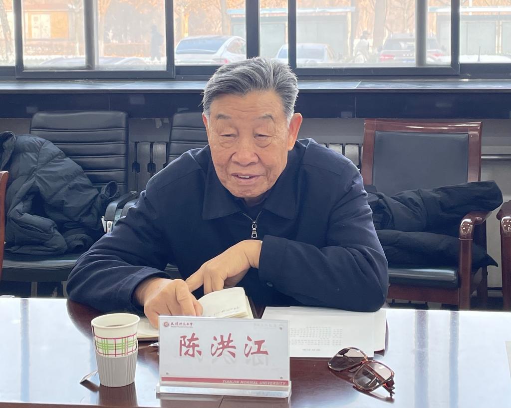 陳玳瑋在致辭中對陳洪江一行來校調研表示熱烈歡迎,對市關工委長期以來對學校各項事業發展的指導和支持表示感謝。他指出,長期以來,市關工委帶領全市“五老”隊伍不求回報、積極作為,為促進祖國下一代健康成長,培養德智體美勞全面發展的社會主義建設者和接班人發揮了不可替代的作用,為我們樹立了模范和榜樣。天津師范大學作為天津百年師范教育的傳承者,是天津市唯一面向基礎教育輸送優質師資的師范大學,具有鮮明的教師教育特色。近年來,學校高度重視馬克思主義學院建設,獲批全國重點馬院,成立新時代馬克思主義研究院,各項工作取得了顯著成績。希望市關工委的老領導、老前輩、老同志們對學校發展特別是馬克思主要學院建設多提寶貴意見建議,將“五老”的理想信念、寶貴經驗、優良作風薪火相傳,共同培養造就擔當民族復興大任的時代新人。