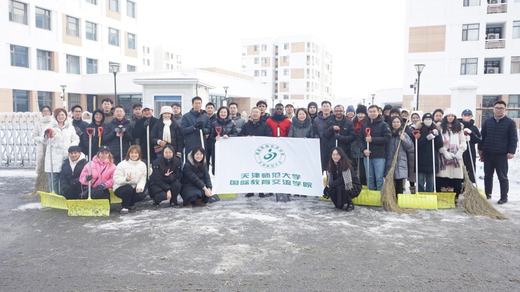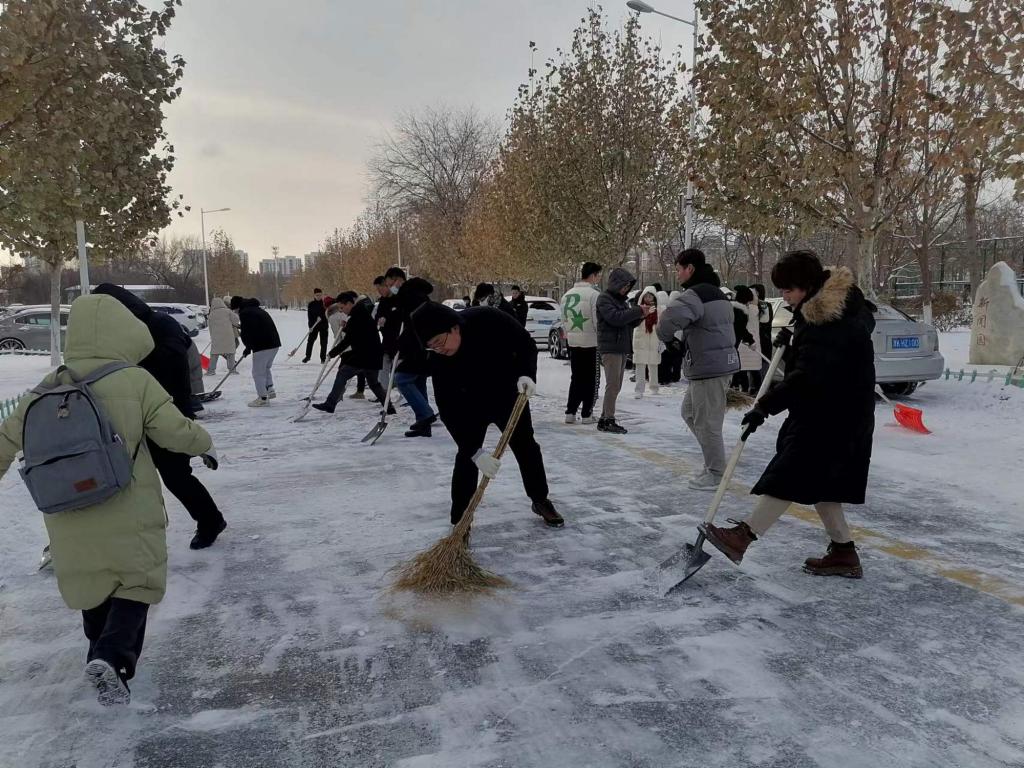 除雪現場,師生們化身校園“守護者”,紛紛行動起來,不怕苦不怕累,大家團結協作、互幫互助,手持推雪鏟、鐵鍬等工具,有序地清理道路積雪、鏟除路面結冰。師生們熱火朝天地忙碌著,用火熱的情懷為冬日校園增添了一股暖流,為全校師生的安全出行提供了保障。