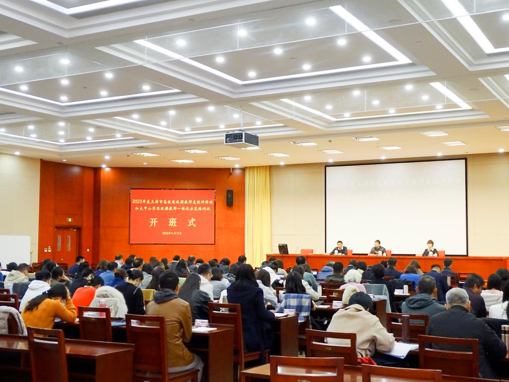 馬克思主義學院消息(通訊員 金明昊)11月13日,天津市高校思政課教師高級研修班和大中小學思政課教師一體化示范培訓班在市委黨校群團干部培訓學院開班。市委教育工委、市教委學生思想教育與管理處處長楊明作開班動員。全市各高校馬克思主義學院院長參加開班儀式,近100所大中小學校的103名思政課骨干教師和思政課分管領導干部作為參訓學員參加封閉學習。天津師范大學馬克思主義學院黨委書記郭尚維主持開班儀式,馬克思主義學院常務副院長李朝陽教授以《關于講好思政課的幾點思考》為題作首場報告。