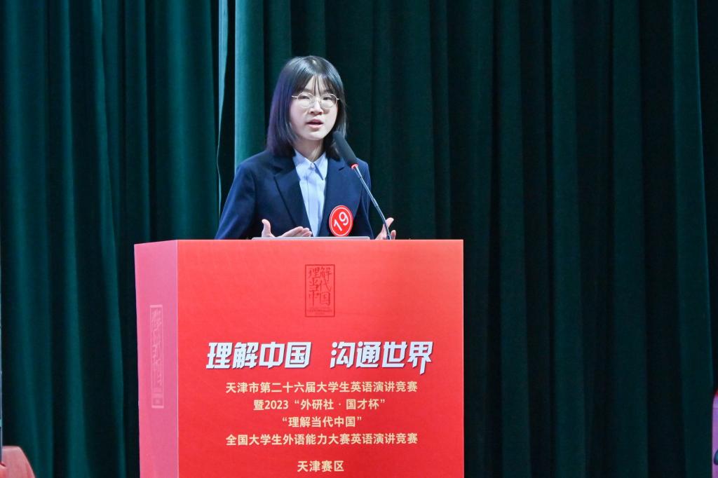 外國語學院消息(通訊員 陳乾坤)近日,由天津市教委主辦、天津大學外國語學院承辦的2023“外研社·國才杯”“理解當代中國”全國大學生外語能力大賽落下帷幕。我校外國語學院學生況思穎、陳瑞垚在演講決賽中表現出色,分別獲得特等獎第一名和第二名,創造了我校在該項賽事中的最佳成績。來自外國語學院的喻可心、況思穎、蕭海棠、董鈺姍、劉嘉文、陳瑞垚等六位同學將代表天津市參加四個賽項的全國總決賽。