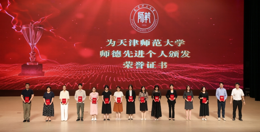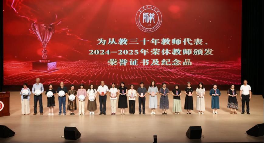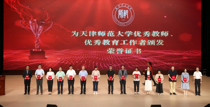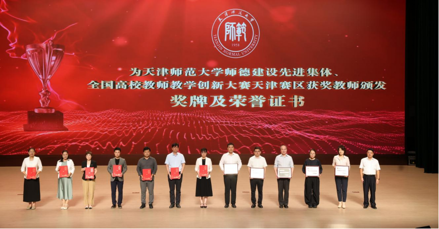 與會領導分別為從教三十年教師、榮休教師、天津師范大學優秀教師、優秀教育工作者、師德先進個人、師德建設先進集體、全國高校教師教學創新大賽天津賽區獲獎教師、引育國家級人才代表、天津市模范集體、天津市三八紅旗集體等教師代表頒獎。