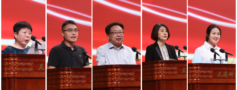 從教三十年教師代表文學院鄭秀琴教授回顧了自己與天津師范大學共同成長的三十年歷程,表達了對學校的感恩、對教師職業的敬畏與堅守。優秀教師代表化學學院陳晨副教授分享了自己在師大八年的從教經歷、對教師職業的理解和以教育家精神為引領,扎實落實立德樹人根本任務的探索和實踐。國家級引育人才代表生命科學學院王洪隆教授介紹了自己的學習和研究經歷,表示愿以一顆歸國赤子之心,回饋祖國和母校的培養。天津市模范集體國際教育交流學院院長楊薇教授匯報了學院在國際中文教育領域的發展歷程以及在孔院建設、人才培養、學科理論創建、平臺搭建等方面取得的豐碩成果。學生代表外國語學院碩士研究生、2025上合峰會媒體組學生志愿者王品一講述了從自己在師大的求學、支教及參與國際大型會議志愿工作的經歷中感悟到的師者內涵,表達了要牢記校訓、傳承教育薪火的決心。