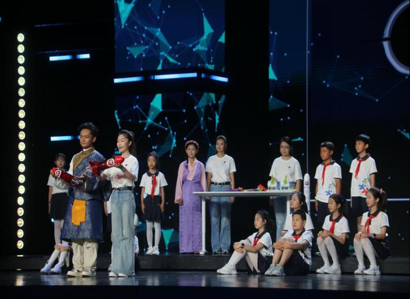 全國科學實驗展演匯演活動特等獎與最佳表演獎作品,教育學部創編的《飛天逐夢》亮相“天津科普之夜”,團隊對劇目進行了創新改編。正值西藏自治區成立60周年,劇目以科學教育專業公費師范生的日常科普實踐為背景,巧妙融入了明朝萬戶飛天的歷史故事。演出中,科學師范生們與兩位立志成為科學教師的藏族同學,以及15名小學生共同組成生動的課堂場景。通過對劇目環節的改良與升級,形象展示了航天科學原理,更展現了科學教育跨越地域的傳播力量。