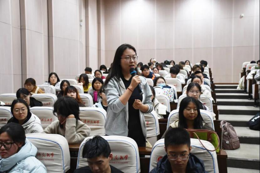 在交流環(huán)節(jié),李翠松與現(xiàn)場(chǎng)學(xué)生親切互動(dòng),耐心解答了關(guān)于教學(xué)實(shí)踐、職業(yè)成長與從教信念等方面的問題。同學(xué)們表示,李書記所講的“教育的情懷、科學(xué)的思維、工匠的專注”,更加堅(jiān)定了自己以教育家精神為引領(lǐng),扎根課堂、潛心育人的決心。本次報(bào)告會(huì)是天津市“三校一院”教師教育創(chuàng)新平臺(tái)在本學(xué)期舉辦的第二場(chǎng)活動(dòng),標(biāo)志著“三校一院”卓越教師大講堂系列活動(dòng)的常態(tài)化推動(dòng)。該講堂將作為推動(dòng)“七大融通”機(jī)制落地、深化“思政融通”的重要載體,持續(xù)圍繞教育家精神、科學(xué)家精神、工匠精神等主題開展專題報(bào)告,助力構(gòu)建具有天津特色的橫向融通、縱向貫通的教師教育培養(yǎng)新體系。