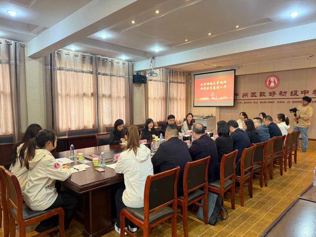 董洪霞先后來到哈密市第四中學、定西市安定區東關小學和重慶市開州區敦好初級中學看望慰問我校第二十七屆研究生支教團成員,察看校園環境,實地走訪生活住地。董洪霞代表校黨委向各支教地團委、教育局、學校對我校支教團學生的關心支持表示衷心感謝。在座談交流會上,董洪霞分別聽取了各研究生支教團分團的工作匯報和支教團成員的收獲感悟。她表示,支教團學生在兩個多月的時間里能夠迅速克服地域差異,主動融入新環境,在教育教學工作中播撒知識種子,傳承紅色基因,全面促進學生成長成才,充分展現了天津師大學子昂揚向上的青春風采和使命擔當。