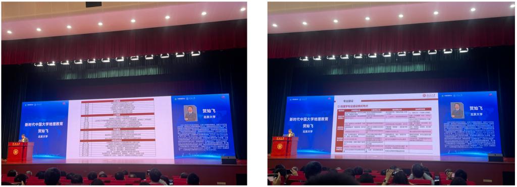 與此同時(shí),在河海大學(xué)舉辦的2025年全國地理科學(xué)類一流本科專業(yè)建設(shè)研討會(huì)上,我校地理科學(xué)專業(yè)再度成為焦點(diǎn)。地理教指委主任賀燦飛教授在作大會(huì)主旨報(bào)告時(shí),于專業(yè)建設(shè)案例分析模塊將“天津師范大學(xué)”置于首位進(jìn)行解讀;在后續(xù)的模式歸納與經(jīng)驗(yàn)總結(jié)中,亦將我校實(shí)踐列于首位。這不僅是對我校地理科學(xué)專業(yè)建設(shè)思路與質(zhì)量的充分肯定,更是將其視為全國同類專業(yè)建設(shè)的重要參考標(biāo)桿。會(huì)上,我校地理學(xué)部副部長胡蓓蓓教授作了題為《天津師范大學(xué)地理科學(xué)課程思政育人體系創(chuàng)新與實(shí)踐》的專題報(bào)告,系統(tǒng)分享了我校將思想政治教育有機(jī)融入地理專業(yè)人才培養(yǎng)全過程的理念、體系設(shè)計(jì)與實(shí)施成效,引發(fā)了與會(huì)同行的廣泛關(guān)注和熱烈討論。