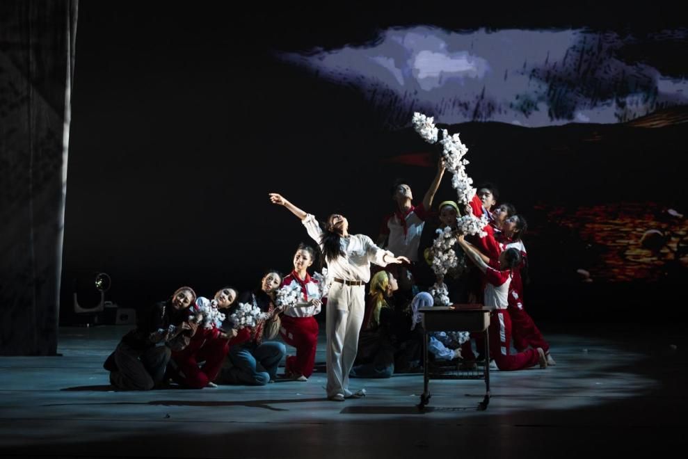 舞劇展現了數十年后,秀琴的外孫女林曉循著精神脈絡遠赴新疆支教,在天山腳下書寫新時代的奉獻篇章:她幫助輟學兒童重返課堂,用知識阻斷貧困代際傳遞;她助力棉田豐收,將產業幫扶與文化交流相結合。舞蹈系創作團隊緊扣“教育援疆”“文化潤疆”國家戰略,讓“棉田雪浪”與“鐵水奔涌”形成時空交織的舞臺意象;同學們以細膩的情感表達,展現了林曉與邊疆群眾的深厚聯結,成為促進各民族交往交流交融、鑄牢中華民族共同體意識的鮮活藝術載體。