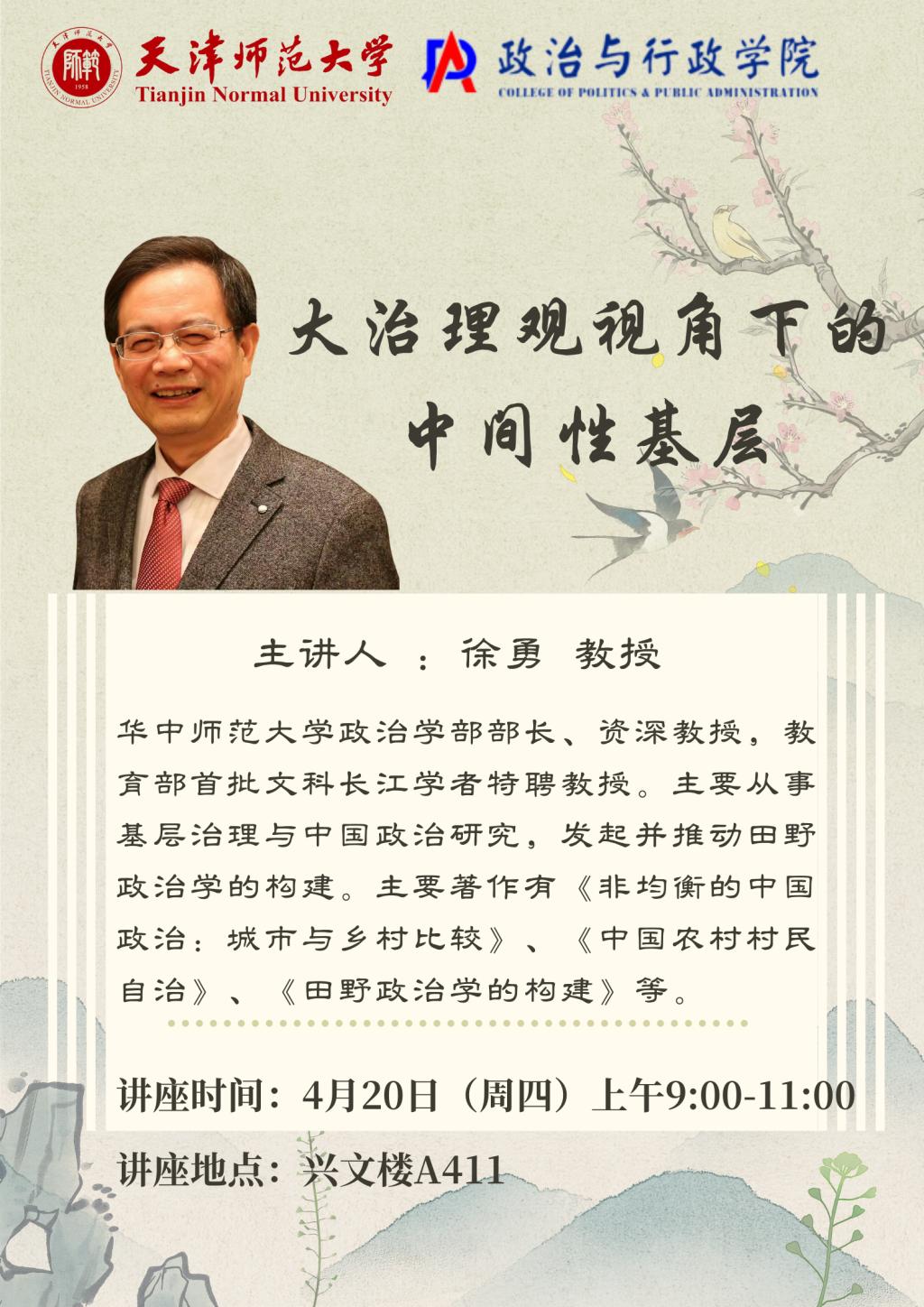 演講人:徐 勇,華中師范大學政治學部部長、資深教授,教育部首批文科長江學者特聘教授。主要從事基層治理與中國政治研究,發起并推動田野政治學的構建。主要著作有《非均衡的中國政治:城市與鄉村比較》、《中國農村村民自治》、《國家化、農民性與鄉村整合》、《田野政治學的構建》、《關系中的國家》多卷本等。
