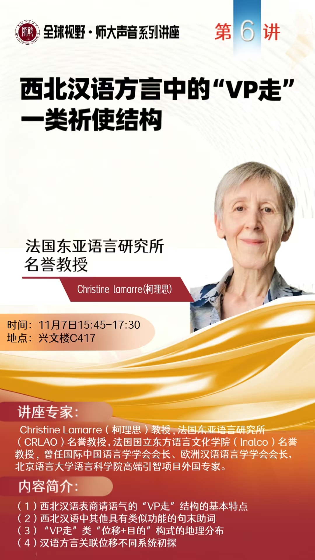 【預(yù)告】全球視野·師大聲音系列講堂第6講——西北漢語方言中的“VP走”一類祈使結(jié)構(gòu)