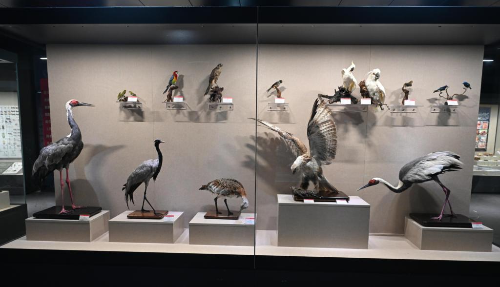 天津師范大學生態(tài)記憶展館是一個集教學、科研與科普于一體的市級科普教育基地,坐落于天津師范大學校內。展館收藏了來自40余個分類單元的2000余件生物標本,涵蓋高等植物、蕈菌、昆蟲、軟體動物、魚類、兩爬類、鳥類及哺乳動物等多個類群。展館運用實物標本、歷史資料和多媒體技術,生動呈現了天津地區(qū)的生態(tài)演變、面臨的環(huán)境問題及其帶來的警示,同時也展示了豐富的生物多樣性,旨在讓參觀者深刻理解人類與自然和諧共生的關系。