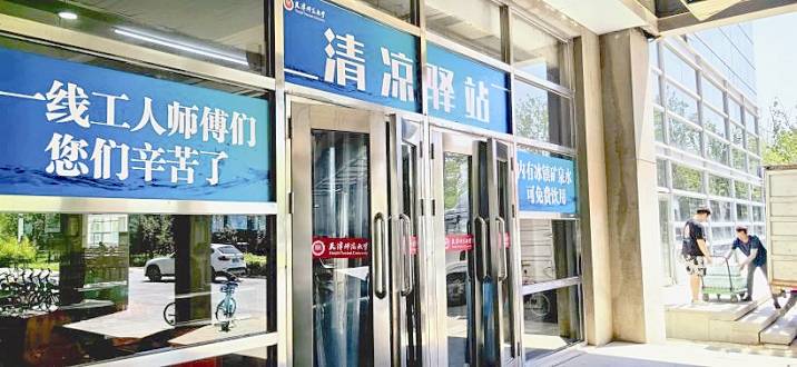 7月13日,位于第一學生食堂一樓南側專屬區(qū)域的“清涼驛站”正式投入使用,為學校暑期勞動者提供自助式冰鎮(zhèn)飲用水、解暑綠豆湯、清涼酸梅湯、空調休息區(qū)等防暑降溫免費服務項目。