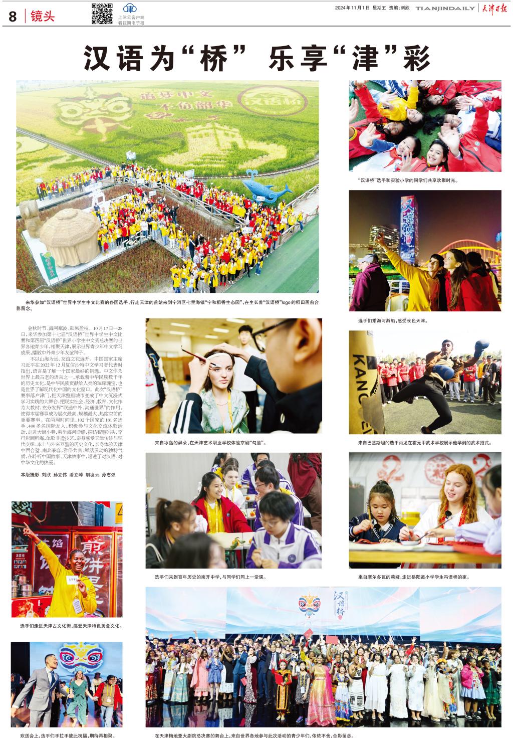 金秋時節、海河粼波、碩果盈枝。10月17日—28日,來華參加第十七屆“漢語橋”世界中學生中文比賽和第四屆“漢語橋”世界小學生中文秀總決賽的世界各地青少年,相聚天津,展示世界青少年中文學習成果,播散中外青少年友誼種子。 不以山海為遠,友誼之花遍開。中國國家主席習近平在2022年12月復信沙特中文學習者代表時指出,語言是了解一個國家最好的鑰匙。中文作為世界上最古老的語言之一,承載著中華民族數千年的歷史文化,是中華民族貢獻給人類的璀璨瑰寶,也是世界了解現代化中國的文化窗口。此次“漢語橋”賽事落戶津門,把天津整座城市變成了中文沉浸式學習實踐的大舞臺,把現實社會、經濟、教育、文化作為大教材,充分發揮“聯通中外、溝通世界”的作用,使得本屆賽事成為層次最高、規模最大、熱度空前的重要賽事。在兩周時間里,102個國家的181名選手、400多名國際友人,積極參與文化交流體驗活動,走進大街小巷,乘坐海河游船,探訪智慧碼頭,穿行彩畫稻海,體驗非遺技藝,親身感受天津傳統與現代交織、本土與外來互鑒的歷史文化,親身體驗天津中西合璧、南北兼容、雅俗共賞、鮮活靈動的獨特氣質,在聆聽中國故事、天津故事中,增進了對漢語、對中華文化的熱愛。 來源:2024年11月1日 天津日報 第8版 鏈接:http://epaper.tianjinwe.com/tjrb/html/2024-11/01/content_143092_1458590.htm |