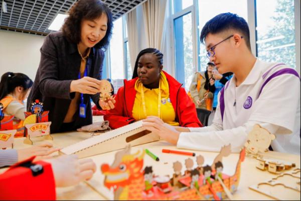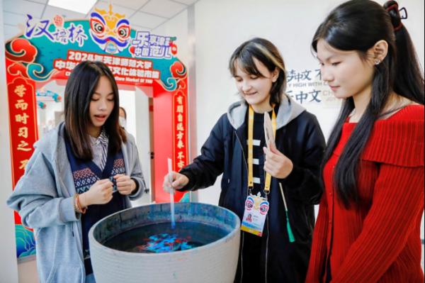 10月19日,第十七屆“漢語橋”世界中學生中文比賽的選手們在緊張的比賽之余,參加了豐富有趣的校園體驗活動,包括非遺香囊、漆扇工藝、花鈿藝術、剪紙藝術、走馬燈等文化體驗項目。