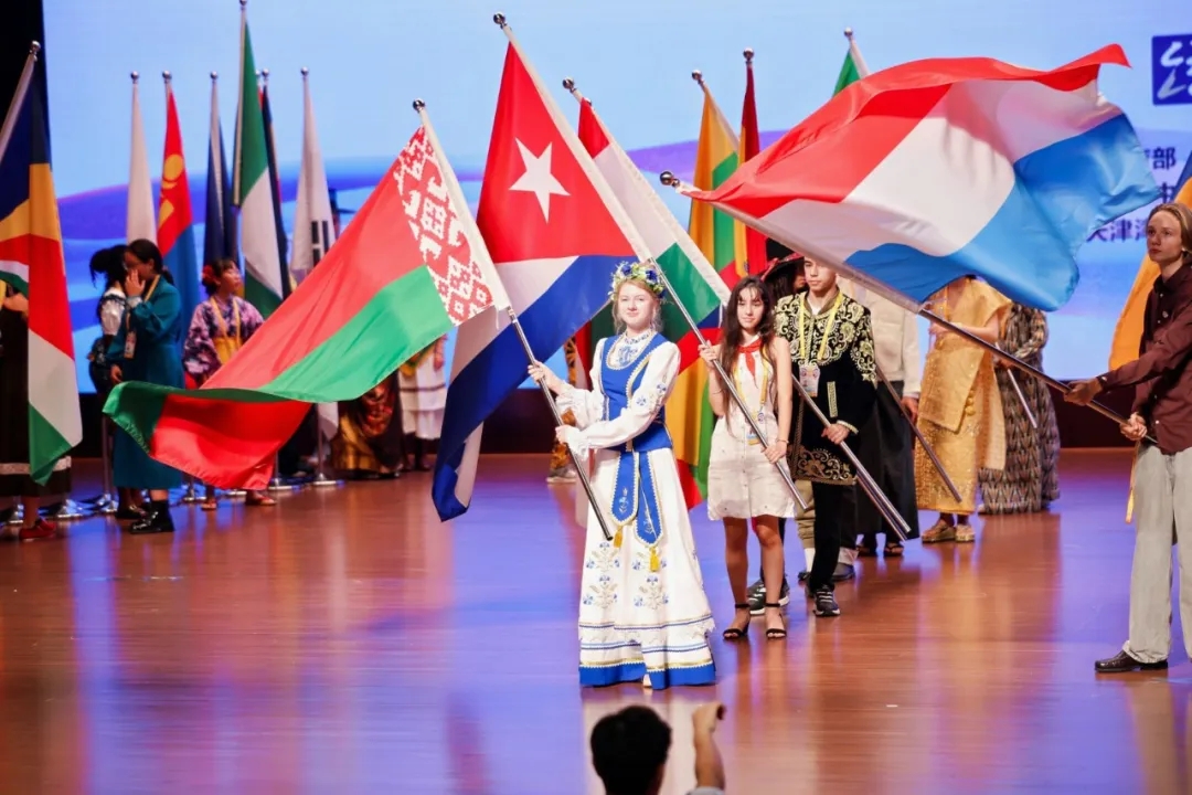 伴隨著“漢語橋”主題曲響起,來自96個國家的113名選手揮舞著本國國旗依次入場。