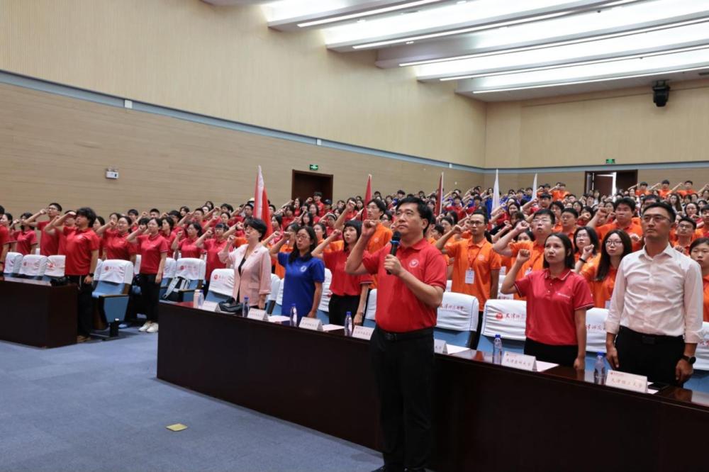 天津市第十三批大學生赴新疆和田實習支教團出征儀式近日在天津師范大學舉行,來自天津師范大學、天津醫科大學、天津中醫藥大學、天津理工大學、天津財經大學、天津外國語大學、天津商業大學、天津職業技術師范大學、天津城建大學、天津體育學院的370余名援疆支教大學生及帶隊管理教師等參加。