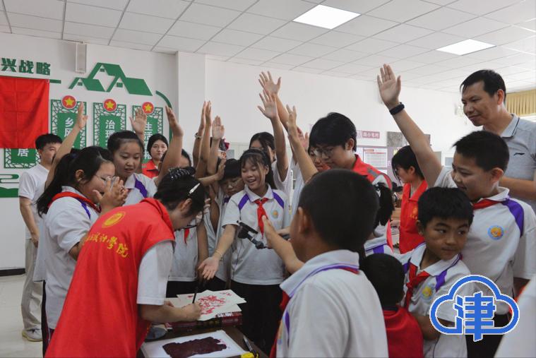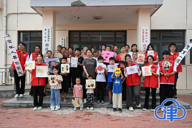 “哇!好漂亮的顏色??!”十幾個(gè)小朋友團(tuán)團(tuán)圍住身著紅馬甲的志愿者,在漆扇出水的那一刻全場發(fā)出“哇”的驚嘆。這是7月4日實(shí)踐團(tuán)來到天津市靜海區(qū)良王莊鄉(xiāng)邢莊子村,開展“漆思妙享”非遺市集時(shí)的一幕。漆扇、版畫、剪紙、 書法……十一種豐富文創(chuàng)非遺齊聚,村民游客熱鬧“趕集”。在市集上,實(shí)踐團(tuán)圍繞天津紅色歷史、津沽文化,城市發(fā)展,以“藝術(shù)體驗(yàn)+文脈傳承”沉浸式體驗(yàn),帶領(lǐng)村民漂漆畫、剪紙、印版畫、捏泥塑、唱民謠……有效推動(dòng)了傳統(tǒng)文化的加速“破圈”。
