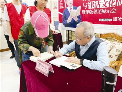 譚汝為教授在圖書大廈簽售津版著述。