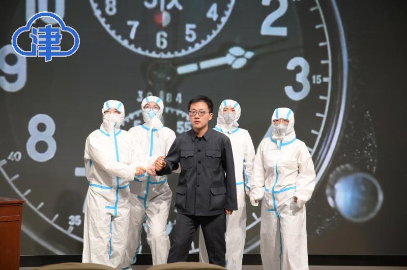 整部舞臺劇共有七幕,以鄧稼先夫人許鹿希的視角展開,采用倒敘方法講述她作為鄧稼先一生的旁觀者和親歷者所了解的鄧稼先。隨著舞臺劇的開場,天津師范大學學生演員們帶大家“回到”那個百廢待興的年代,“目睹”鄧稼先赴美深造、毅然回國報效祖國、接受任務、投身科研事業等場景,追憶他“干驚天動地事,做隱姓埋名人”的光輝一生,通過科學家形象的多維塑造,對科學家精神作出生動詮釋,讓學生們感受心懷“國之大者”的勇毅擔當、體悟科學成就背后的艱辛與努力、樹立民族復興的報國志向。當看到舞臺上的鄧稼先不顧自身安危,用雙手捧起碎彈時,不少觀眾眼中淚光閃爍。