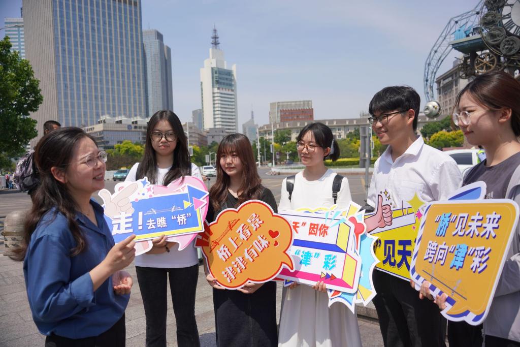 “同學們,咱們天津的解放橋是全國唯一一座立轉豎轉式鋼結構開啟橋,大家知道解放橋有多少年歷史嗎?”“大家看,這就是鉚釘,我們在修復解放橋過程中,將現代鉚釘施工和傳統鉚接工藝相結合,讓解放橋在建成80年后再次恢復了開啟功能,為亮麗海河再添新景?!比涨?,天津市文旅局、天津城建集團、天津師范大學文學院共同舉辦“橋”見天津——青年學生思政實踐課暨文化惠民活動。