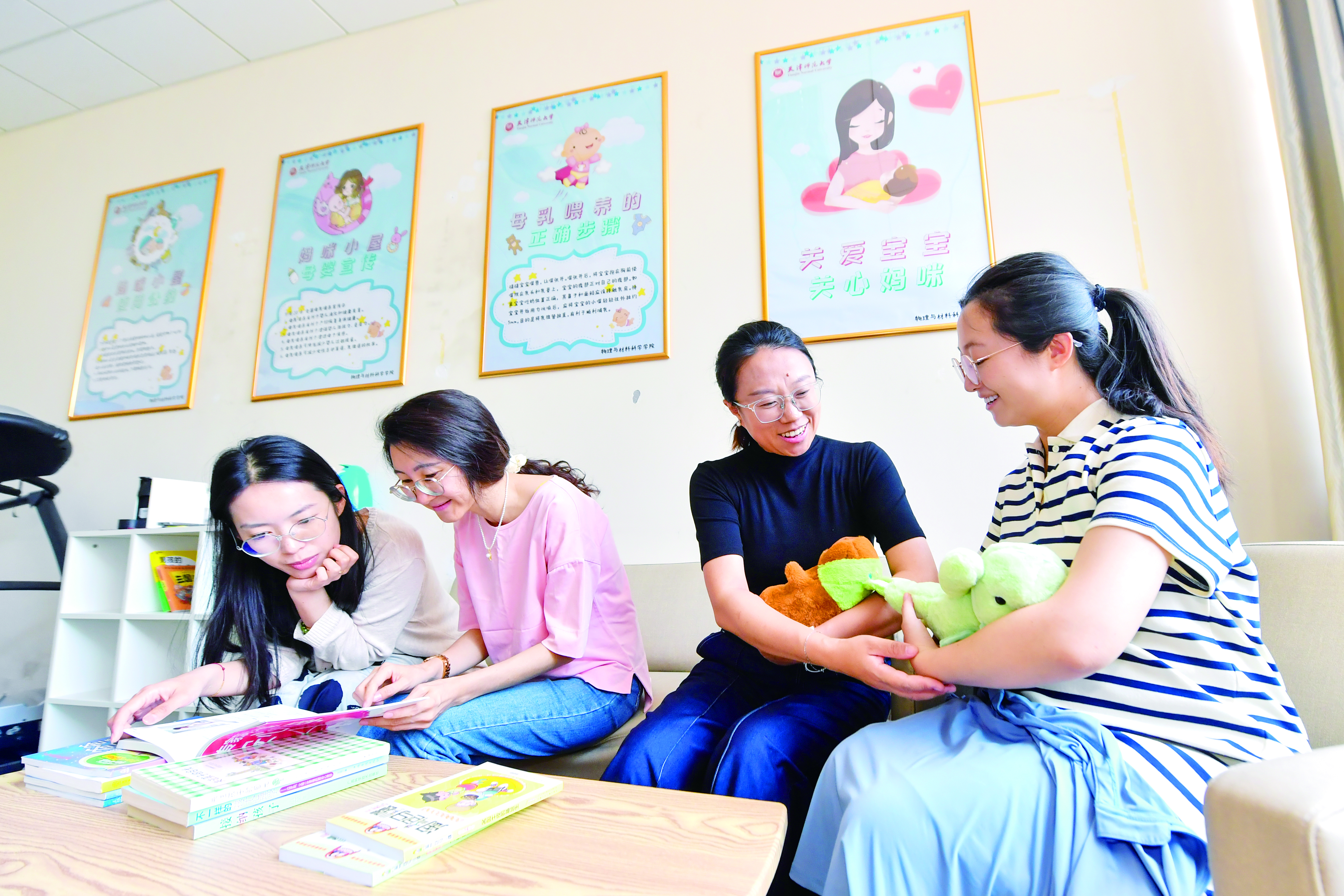 日前,天津師范大學物理與材料科學學院“愛心媽咪之家”建成投用,成為集哺乳、婦幼保健交流、心理調適舒壓等多項功能于一體的“溫馨之家”。圖為女教職工在“愛心媽咪之家”交流育兒經驗。