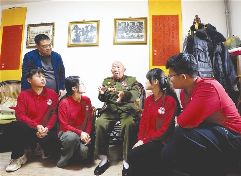 近日,天津師范大學法學院師生來到天津警備區河西第二干休所,慰問革命老英雄張武英,探訪這位曾經為建立中華人民共和國而英勇奮戰的百歲老戰士,現場聆聽他講述那段激情燃燒的歲月,重溫中國共產黨領導人民浴血奮戰的光輝歷程。據了解,張武英老人青年時期就加入了中國共產黨,先后參加過抗日戰爭、解放戰爭、抗美援朝戰爭,中華人民共和國成立后,還參與了國家建設工作,是國家事業發展的親歷者、建設者。