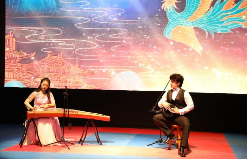 展演中,師大學子表演了古箏與手鼓演奏《春之舞》,中國漢唐古典舞《十二花神》和歌曲《相親相愛》《友誼地久天長》等節目。精心編排的節目充分展示了中華優秀傳統文化的獨特魅力,熱情奔放的表演體現出中國當代大學生的青春活力和精神風貌。