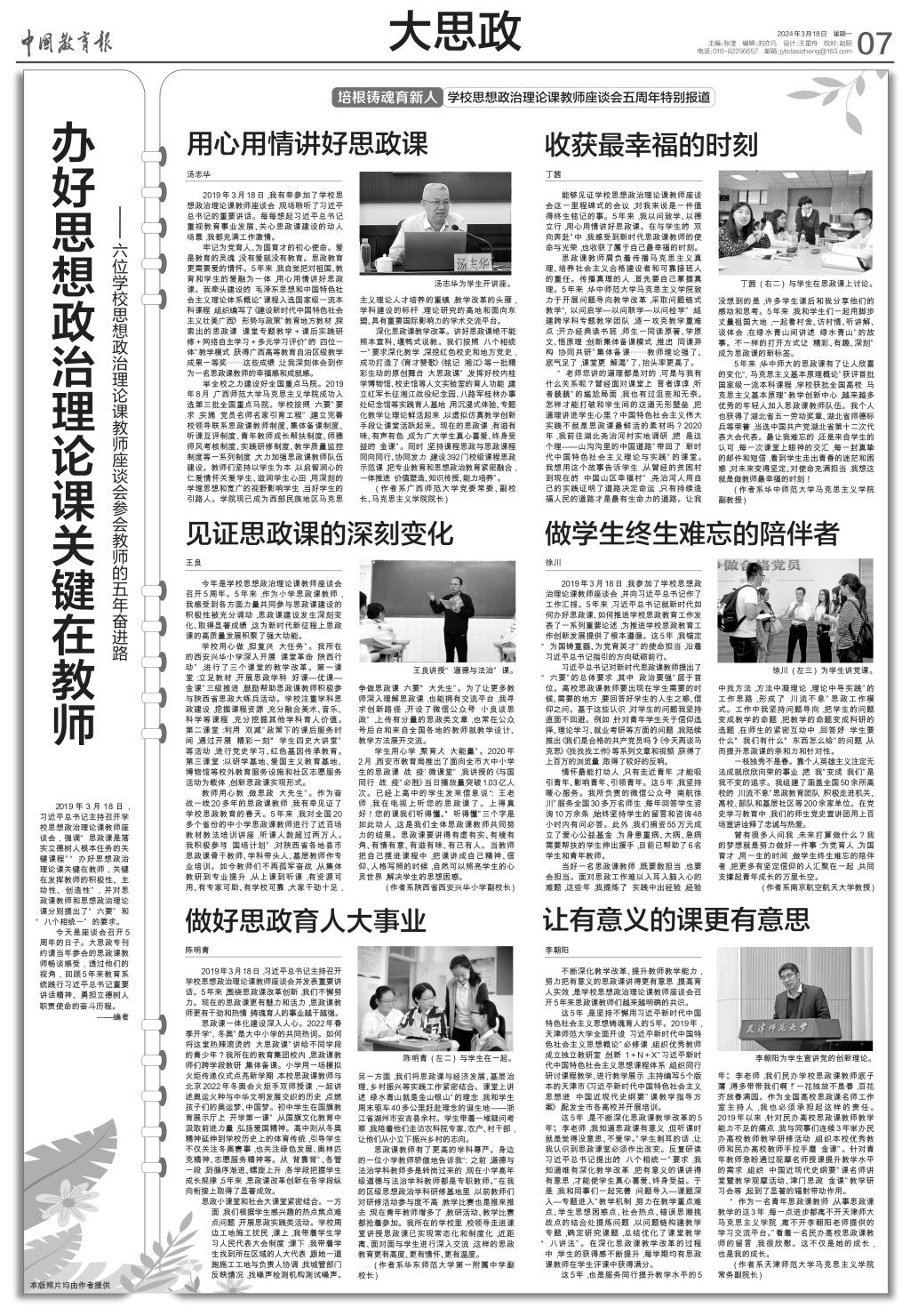 “作為一名青年思政課教師,從事思政課教學的這3年,每一點進步都離不開天津師大馬克思主義學院,離不開李朝陽老師提供的學習交流平臺。”看著一名民辦高校思政課教師的留言,我很欣慰。這不僅是她的成長,也是我的成長。(作者系天津師范大學馬克思主義學院常務副院長)