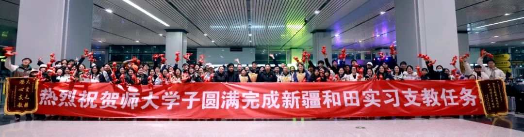 12月31日凌晨,天津師范大學2023年秋季學期援疆實習支教團60余名師生,在圓滿完成為期三個半月的實習支教任務后,從新疆和田地區載譽而歸。校黨委常委、副校長陳玳瑋前往機場迎接實習支教學生,學校黨委學生工作部、繼續教育學院負責同志及相關工作人員隨同迎接。