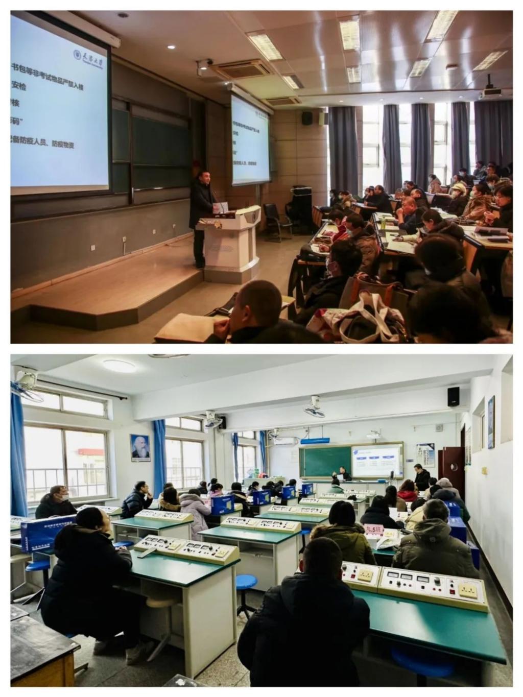 強化安全管理,嚴防作弊,筑牢公平研考。考試管理中,嚴守試卷安全生命線,強化安全保密措施,全方位、全時段監控試卷運轉流程,確保試卷答卷萬無一失。織密“五位一體”防手機作弊立體防護網,手機、背包等非考試用品實行集中管理,采取智能安檢門與手持金屬探測儀“雙安檢”,實施考場內信號屏蔽與考場外無線電監測巡查“雙管控”,落實考生和工作人員手機“雙向集中管理”,開展考務人員網絡線上和市區校線下“雙培訓”,協同現場監考與視頻監考“雙巡查”,嚴把入場安檢關、考場管理關,維護公平、公正的考試環境。