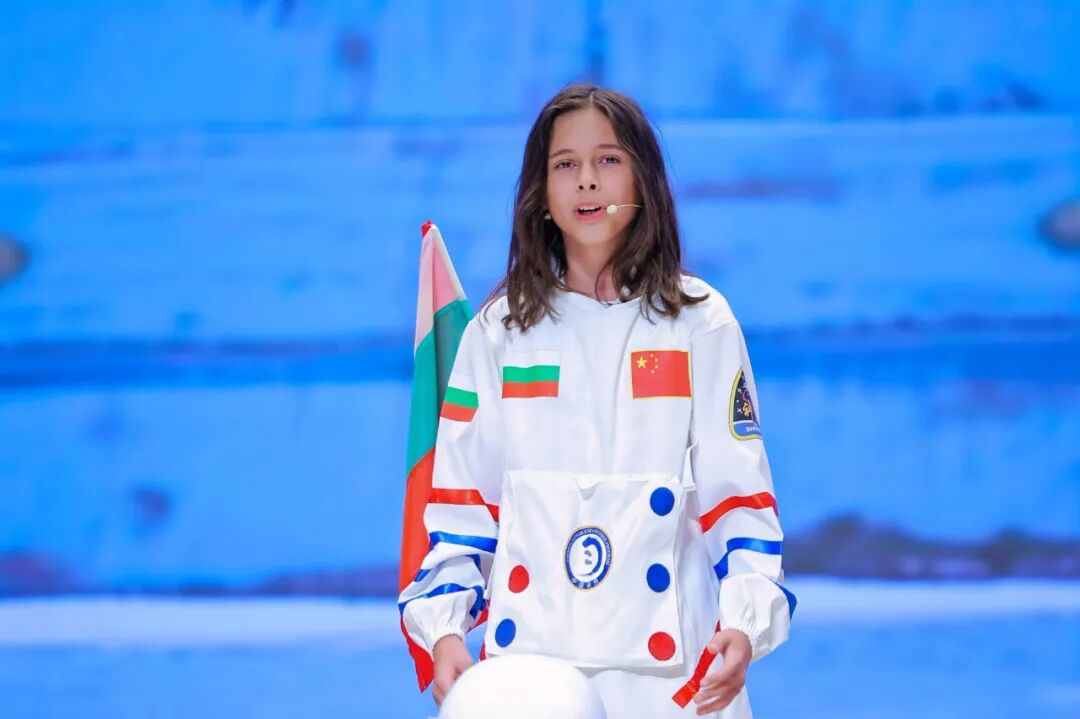 A contestant from Bulgaria wears a spacesuit and shares his story about Chinese culture and his space dream.