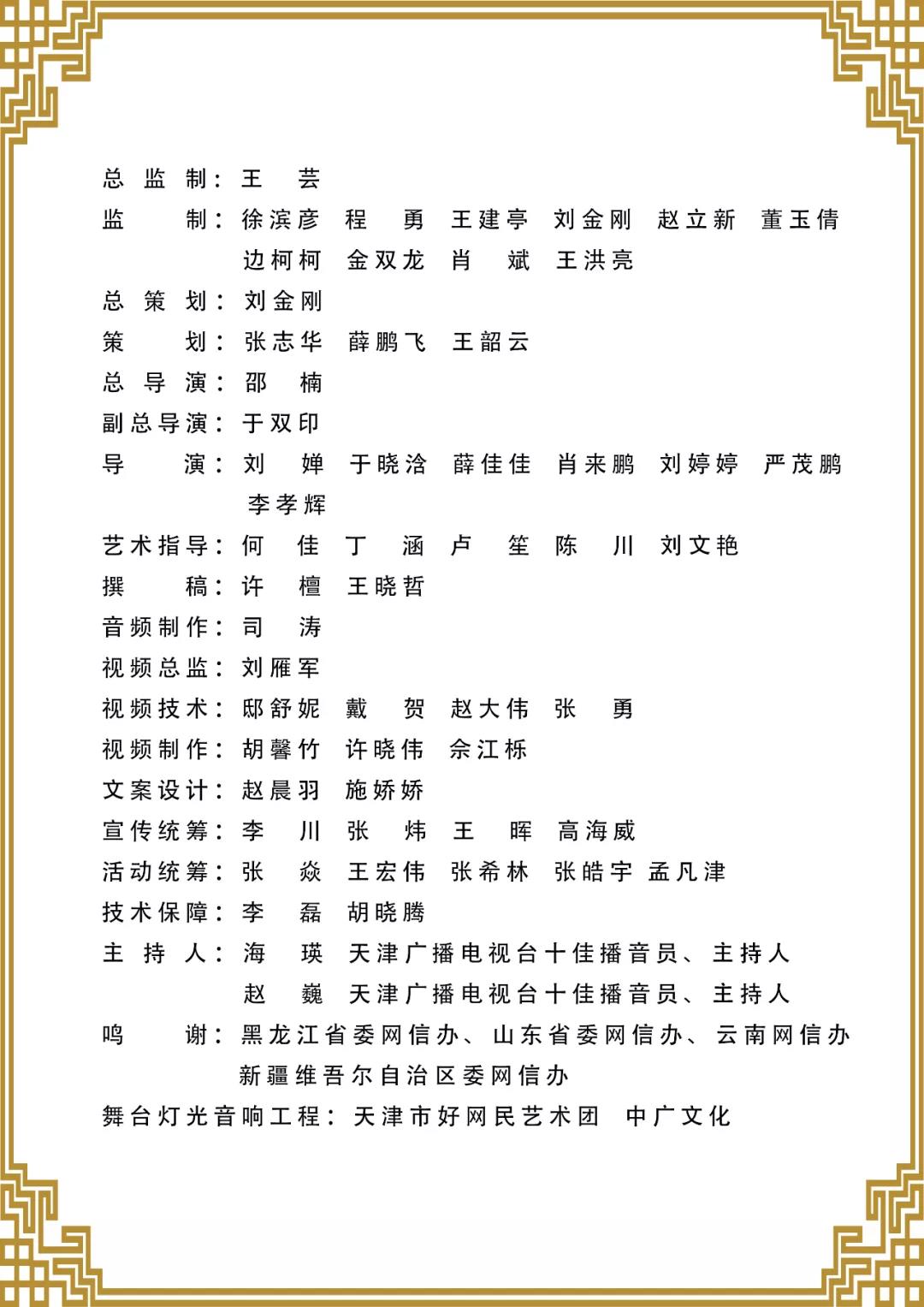 晚會由網信天津、津云新媒體集團、天津市好網民藝術團、中廣文化承辦,天津歌舞劇院、天津市群眾藝術館、天津市短視頻協會協辦。黑龍江省委網信辦、山東省委網信辦、云南省委網信辦、新疆維吾爾自治區委網信辦共同參加晚會錄制。