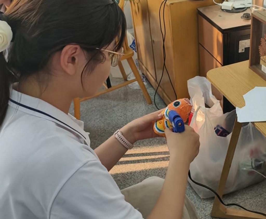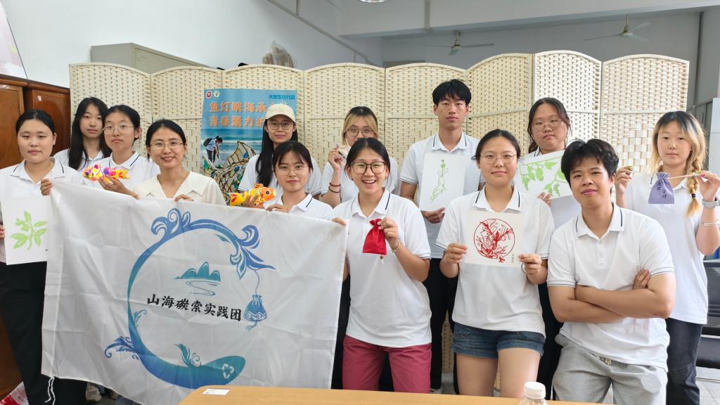 實踐團深挖地域特色文化資源。在天津薊州區八仙山,隊員們跟隨專業教師辨識中藥材,親手制作兼具藥用價值與藝術美感的中藥香囊,同時將生物多樣性知識融入傳統剪紙藝術,創作完成“中藥圖譜”系列剪紙作品。在煙臺,團隊聚焦海洋生態保護,回收海洋廢棄物并將其清洗、剪裁、彩繪后改造為膠東魚燈,不僅重現“燈影映海”的非遺魅力,更以青春實踐詮釋“綠水青山就是金山銀山”理念的時代內涵。