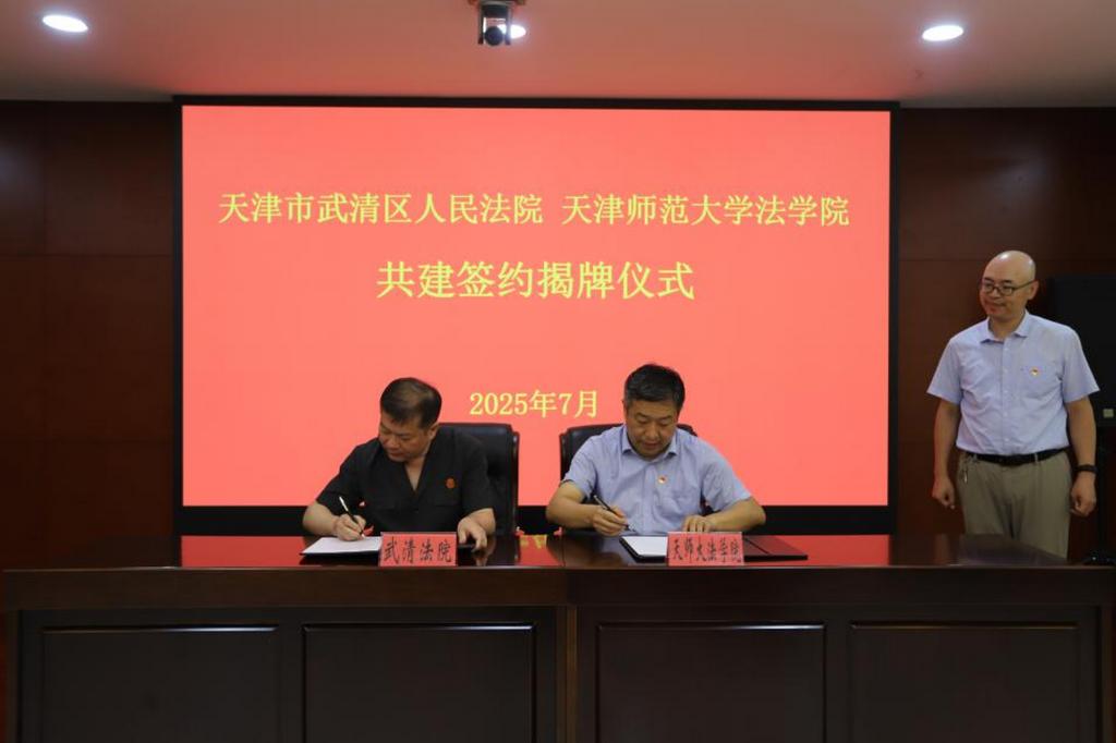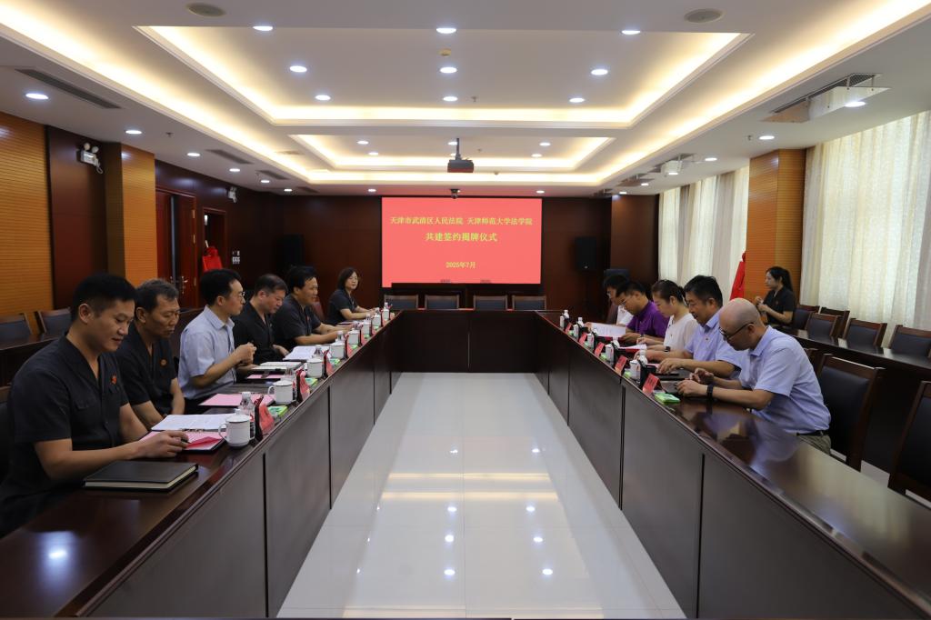 本站訊(通訊員 侯慧秀)7月24日上午,我校法學(xué)院與武清區(qū)人民法院合作共建簽約儀式在武清區(qū)人民法院舉行,法學(xué)院黨委書記何璐與武清區(qū)人民法院黨組書記、院長趙陽共同為“教學(xué)實(shí)踐基地”和“民商事司法理論與實(shí)踐研究基地”實(shí)踐基地揭牌,法學(xué)院黨委副書記、院長郝磊與趙陽簽署合作共建協(xié)議。武清區(qū)人民法院黨組成員、副院長張志剛,副院長王會(huì)民,黨組成員、政治部主任呂洪祥,武清區(qū)法學(xué)會(huì)專職副會(huì)長耿一博,我校法學(xué)院黨委副書記、紀(jì)委書記秦浩,副院長郭明龍共同參加簽約儀式。儀式由武清區(qū)人民法院黨組副書記、副院長胡繼文主持。