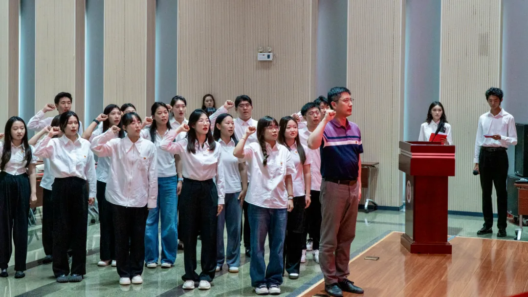 魏尚、孟小麗分別領(lǐng)誓,全體新發(fā)展黨員、團(tuán)員握緊右拳,面向黨旗、團(tuán)旗,鄭重宣誓。當(dāng)“我志愿加入中國共產(chǎn)黨”的誓詞響起,在場的學(xué)子心潮澎湃。