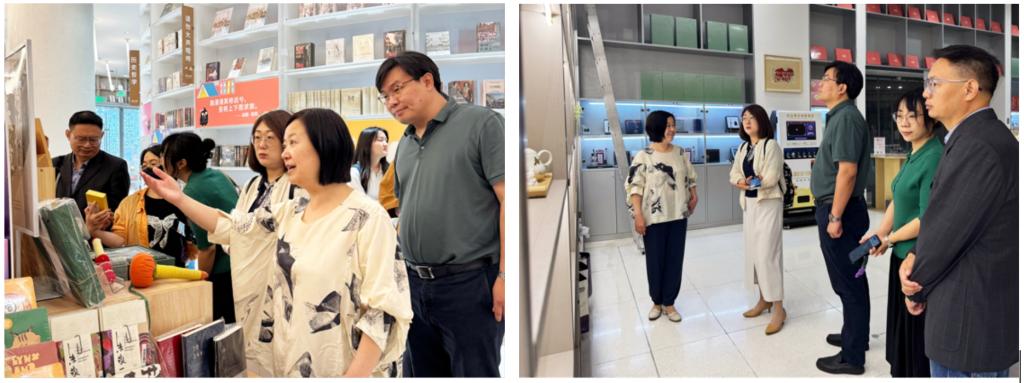 活動伊始,在國圖津灣副總經理袁鴻蕙陪同下,學院一行詳細參觀了國圖津灣文創空間的兩層布局。該空間融合國家圖書館深厚典籍底蘊與現代創意設計,展示了豐富的文化衍生品與創新閱讀體驗場景。通過實地走訪,老師們直觀感受了國圖津灣在活化傳統文化、推動文化創意產業發展方面的實踐成果。