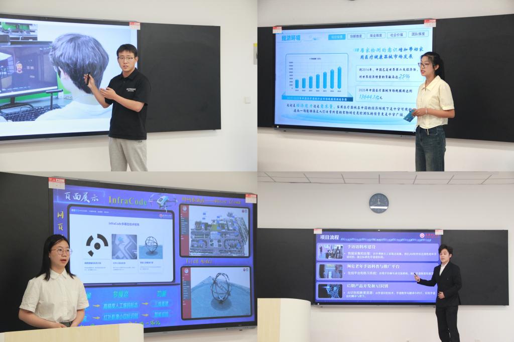 決賽現場氣氛熱烈,各項目團隊圍繞個人成長、項目創新、產業價值、團隊協作、發展前景等關鍵要素,聚焦人工智能+、低空經濟、教育科技、新能源材料、傳統文化、食品安全等國家戰略與民生熱點領域,從項目的研發背景、產品服務、核心技術、市場分析和營銷策略等維度展開精彩闡述,不僅展現了團隊扎實的專業知識、敏銳的市場洞察力和卓越的實踐能力,更凝聚著同學們對社會熱點、科技前沿和產業發展的深入思考。評委們分別從技術創新、商業模式、團隊架構、落地轉化等角度進行多維度、高標準的點評與指導,為項目完善提供了寶貴建議。