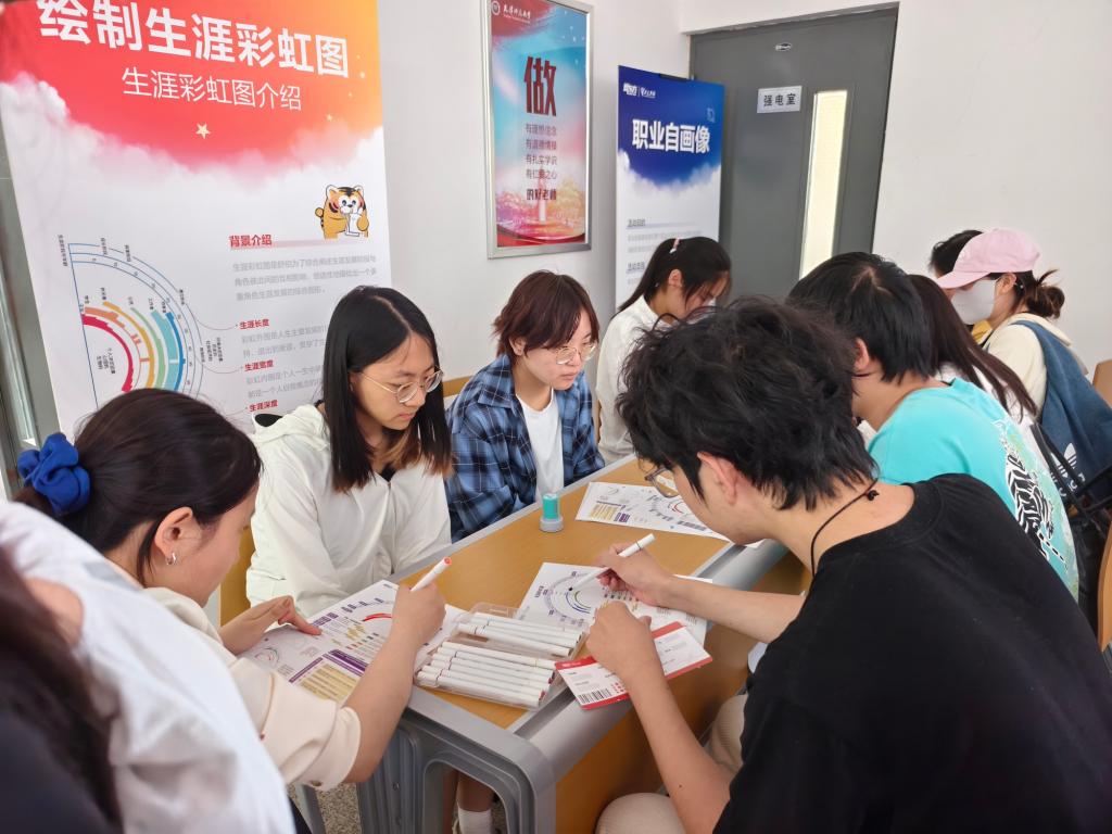 活動現場,“職業自畫像”“價值觀拍賣會”前始終排著長隊,學生在工作人員引導下,通過霍蘭德測試、能力矩陣等工具繪制專屬職業彩虹圖,涂抹不同人生階段的角色濃度,挖掘內心真正的職業追求。“職業飛行棋”環節將職場規則融入游戲場景,讓學生在笑聲中破解求職“新手村”難題。在“簡歷找茬”“發光的自我介紹”環節,同學們積極發言,遞上精心準備的簡歷,提前體驗職場面試現場。