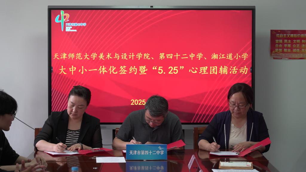 本站訊(通訊員 史冬梅)為充分發揮各教育階段協同育人作用,聚焦美育浸潤行動,拓寬大中小一體化育人工作路徑,豐富思政育人和心理健康教育形式,全面加強和改進大中小學美育一體化工作,同時推動美術師范教育和優秀師資隊伍培育。5月22日,美術與設計學院聯合天津市第四十二中學、河西區湘江道小學共同開展“大中小一體化建設”簽約活動。
