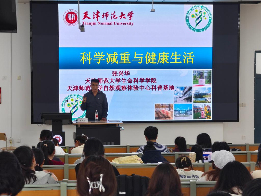 本站訊(通訊員 單一鳴)“同學(xué)們,你們知道身體多重算超重嗎?”“男性超重率高還是女性超重率高?”“肥胖癥的測量指標(biāo)有哪些?”教室里,西青區(qū)科普大使、生命科學(xué)學(xué)院教師張興華和同學(xué)們在興致勃勃地探討關(guān)于“如何科學(xué)減重”的話題。