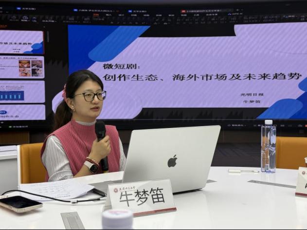 本站訊(通訊員 孫芳)5月10日上午,光明日?qǐng)?bào)文藝部文藝評(píng)論部主任編輯牛夢(mèng)笛應(yīng)邀來(lái)到天津師范大學(xué)音樂(lè)與影視學(xué)院,在京津冀教師協(xié)同發(fā)展中心B座一樓圓桌會(huì)議廳為師生們帶來(lái)了一場(chǎng)題為《微短劇的創(chuàng)作生態(tài)、海外市場(chǎng)及未來(lái)趨勢(shì)》的專題講座。音樂(lè)與影視學(xué)院教授陸長(zhǎng)河主持講座,戲文系主任孫書敏出席活動(dòng)并致辭。